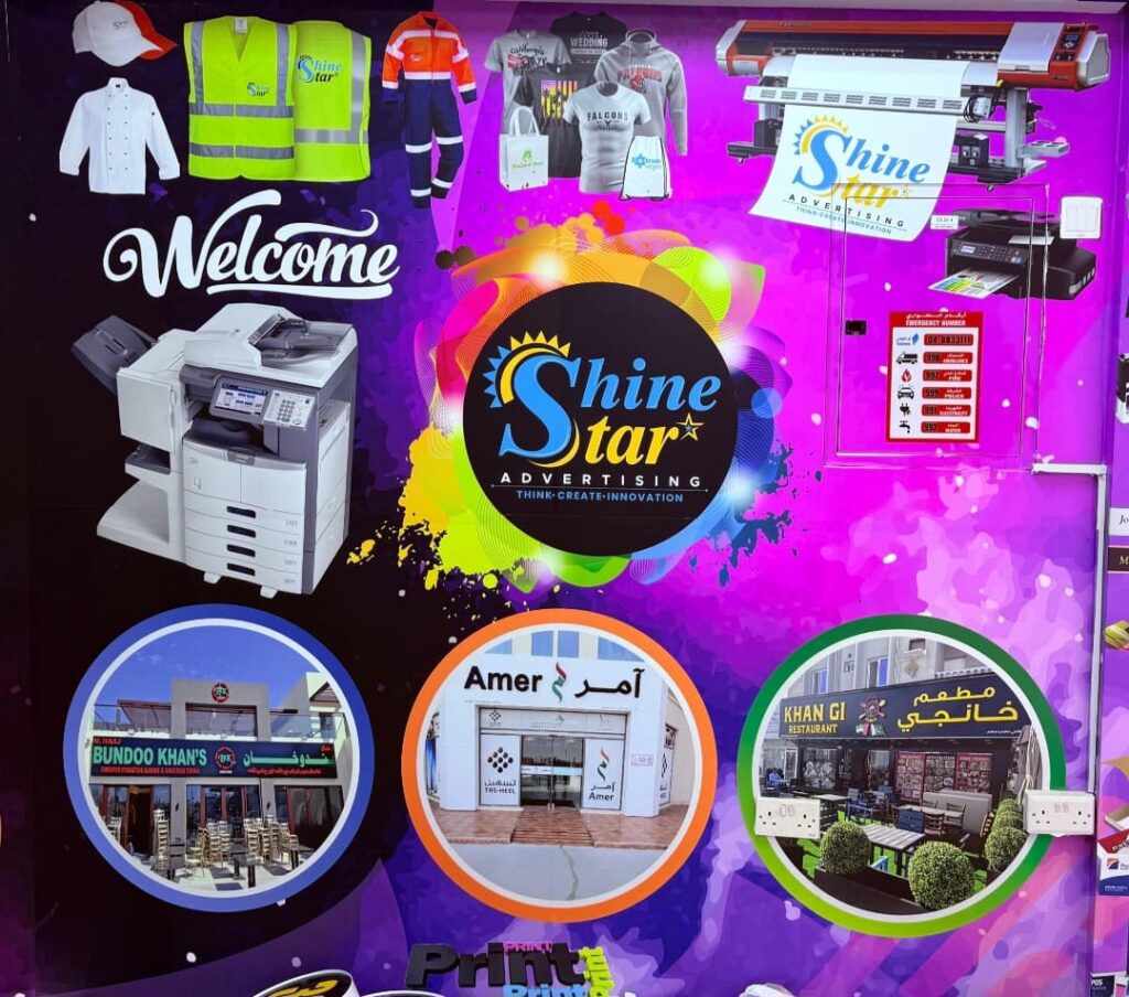 Your branding, signage, and printing solution provider in Dubai is Shine Star Advertising. Whether it be offset and digital printing or 3D LED boards, flex signboards, promotional items, and custom stationery, we apply innovation and accuracy to all projects.